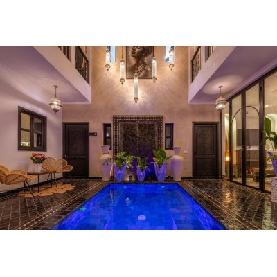 Riad Sahelia enjoys a prime location in Marrakech, offering air-conditioned rooms, a terrace, and free WiFi. The property is within easy reach of several attractions, including the Koutoubia Mosque, the Marrakech Oriental Museum, and Le Jardin Secret. Guests can enjoy the indoor pool or pool views. Each room at this traditional Moroccan courtyard home features a wardrobe, a flat-screen TV, a private bathroom, bedding, and towels. Some rooms at Riad Sahelia offer a patio. Rooms include a coffee machine. All rooms have a safe. Breakfast is served, with options for continental, halal, and gluten-free options. Popular landmarks near the property include Djemaa el-Fna, Bahia Palace, and the Carpet Museum. Marrakech Menera Airport is 6 km from the property.
