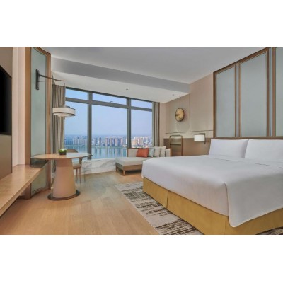 Located just a 5-minute walk from Wanda Plaza, the Changsha Wanda Vista Hotel offers a pure and comfortable artistic oasis. The hotel features an indoor swimming pool, fitness center, and luxurious meeting rooms. It is an 8-minute walk from Xiangjiang Middle Road Metro Station and a 15-minute walk from Wuyi Square. The hotel is a 15-minute drive from Orange Isle Park and a 20-minute drive from Changsha Railway Station. Huanghua International Airport is a 40-minute drive away. The elegantly decorated rooms feature floor-to-ceiling windows overlooking the city or the Xiangjiang River. Each well-equipped room includes a flat-screen TV with satellite and cable channels, a minibar, and a safe. The en suite bathroom features a bathtub and bathrobes. Complimentary bottled water and tea/coffee packets are provided. The hotel offers spacious and flexible spaces with high-end meeting and event facilities. Guests can visit the beauty salon, check emails at the business center, or rent a car to explore the surrounding area. Dry cleaning, laundry, and ironing services are available. The Zhenzhong Restaurant serves a selection of Cantonese cuisine. Café Vista offers a daily buffet.