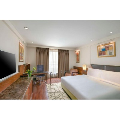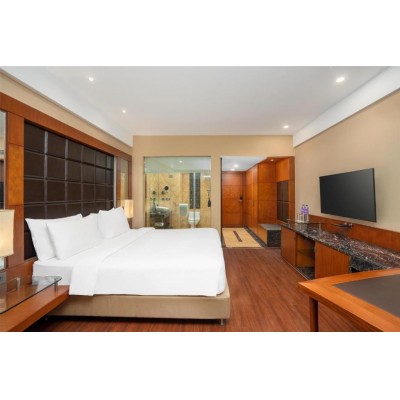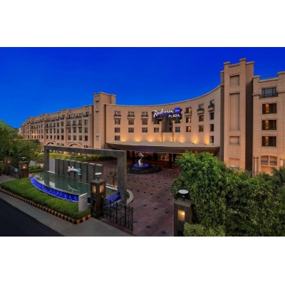 Radisson Blu Delhi Airport is an upscale business hotel located near Indira Gandhi International Airport, offering convenient access to the aero-city, embassies, and business hubs. With comprehensive facilities, it's ideal for transit travelers and extended stays, offering superior rooms and suites, an executive lounge, and convenient airport transfers. Designed to balance productivity and comfort, the hotel boasts state-of-the-art meeting rooms, banquet halls, and a fully equipped business center, making it a premier venue for corporate events, weddings, and social celebrations. This hotel blends modern elegance with classic charm, inviting guests to unwind at its award-winning spa. Featuring a tranquil salt wall, therapeutic massages, Vichy showers, a modern fitness center, and an outdoor pool, the spa is the perfect place to rejuvenate after a long flight or a busy day. Dining is a global journey, from international and continental cuisine to the rich Indian specialties of the iconic The Great Kabab Factory, and the refined authentic Thai, pan-Asian, and Nikkei flavors of Soy Naung Roi. Elegant multinational restaurants and a stylish lounge provide the perfect atmosphere for business meetings or relaxed relaxation. Offering high-speed Wi-Fi, 24-hour concierge service, and modern luxury amenities, the hotel is the premier choice for discerning business and transit travelers. Its prime location, just 8 minutes from Yash Bhoomi (India International Convention Centre) and 20 minutes from Bharat Mandapam, makes it an ideal strategic location for high-profile events, international conferences, and memorable celebrations in Delhi.