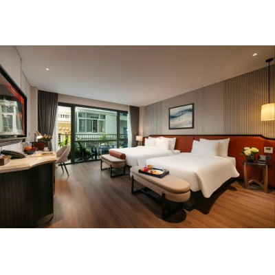 Le Premier Hotel & Rooftop Bar boasts a prime location in Hanoi, offering luxurious accommodations close to Hoan Kiem Lake and Trang Thanh Shopping Center. The property is near several popular attractions, less than 1 km from Hanoi Old Town Gate, 1.8 km from Hanoi Railway Station, and 2 km from the Imperial Fortress. The accommodation provides a 24-hour front desk, airport transfers, concierge services, and free WiFi. All rooms at this hotel are equipped with air conditioning, a seating area, a flat-screen TV with satellite channels, a safe, and a private bathroom with a bidet, free toiletries, and a hairdryer. Each room also has an electric kettle. Some rooms have a balcony, while others offer city views. All rooms at Le Premier Hotel & Rooftop Bar are equipped with bed linen and towels. The property offers a buffet, Asian, or vegetarian breakfast. The accommodation features a restaurant serving American, Chinese, and Korean cuisine, with vegetarian, vegan, and gluten-free options available upon request. Popular landmarks near Le Premier Hotel & Rooftop Bar include St. Joseph's Cathedral, Hanoi Opera House, and Thang Long Water Puppet Theatre. Noi Bai International Airport is 25 km from the property.