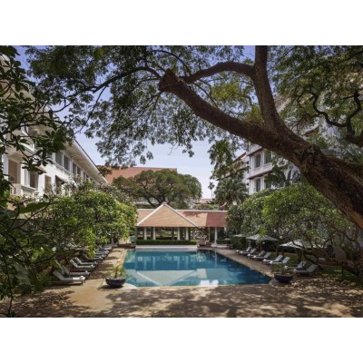 The Raffles Royal Hotel blends luxury with classic charm, featuring private balconies in its rooms with pool or garden views. Guests can enjoy a swim in the outdoor pool, dine at one of the two restaurants, or have a drink at the bar. Free WiFi is available in all rooms. The Chaktomuk 2 Conference Centre is located in the heart of Phnom Penh, 3 km from the Raffles Royal Hotel and a 20-minute drive from Phnom Penh International Airport. The Royal Palace and National Museum are 2 km away. The spacious, air-conditioned rooms at the Raffles Hotel feature cable TV and a minibar. En-suite bathrooms include a hairdryer, bathrobes, and complimentary toiletries. Guests can inquire about meeting room and banquet facilities at the 24-hour front desk. Other facilities include a business center and a tour desk. The Raffles Royal Hotel also offers complimentary global event and meeting solutions via telephone. Le Royal Restaurant serves modern French and Khmer cuisine, while Le Phnom 1929 offers all-day buffet and à la carte options. The Writers' Bar, Elephant Bar, and poolside terrace offer drinks and snacks. 24-hour room service is also available.