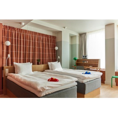 Comfortable Accommodations: Hobo Helsinki offers 4-star comfort in Helsinki city centre. Rooms feature air-conditioning, private bathrooms, free WiFi, and modern amenities.Dining and Leisure: The modern, family-friendly restaurant serves European cuisine with vegetarian, vegan, and gluten-free options. Guests can enjoy high tea and cocktails in a relaxed setting.Convenient Location: Located 6 minutes from Helsinki Cathedral and 500 metres from Helsinki Central Station, the hotel is near attractions such as Helsinki Music Centre and Kamppi Shopping Centre. An ice-skating rink is nearby.Guest Services: The hotel provides a fitness centre, terrace, bar, and free WiFi. Additional services include a paid shuttle, lounge, 24-hour front desk, and electric vehicle charging station.