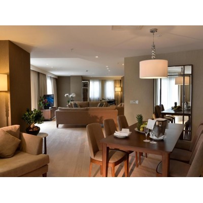 CVK Park Prestige Suites are located within a luxurious residence adjacent to the main building and feature separate kitchen, private dining and living areas. The spacious and comfortable apartments feature contemporary style decor with tiled and marble floors and wooden furniture. All type of apartments are equipped with a refrigerator, oven, kettle, toaster, microwave and a coffee machine. Dishwasher, washing and drying machine, dinnerware, fully equipped kitchen, eco-friendly room automation system are also offered.